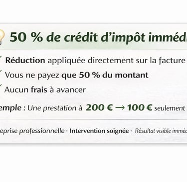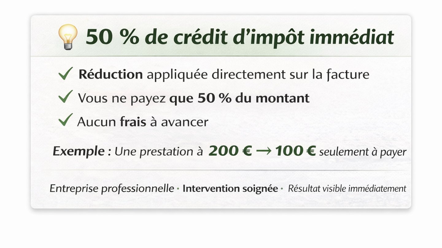 👉 L’avantage fiscal est appliqué directement sur la facture, sans avance de trésorerie